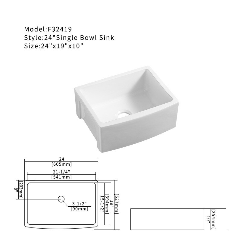 Farmhouse Apron-Front Ceramic 24 in. Single Bowl Kitchen Sink in White